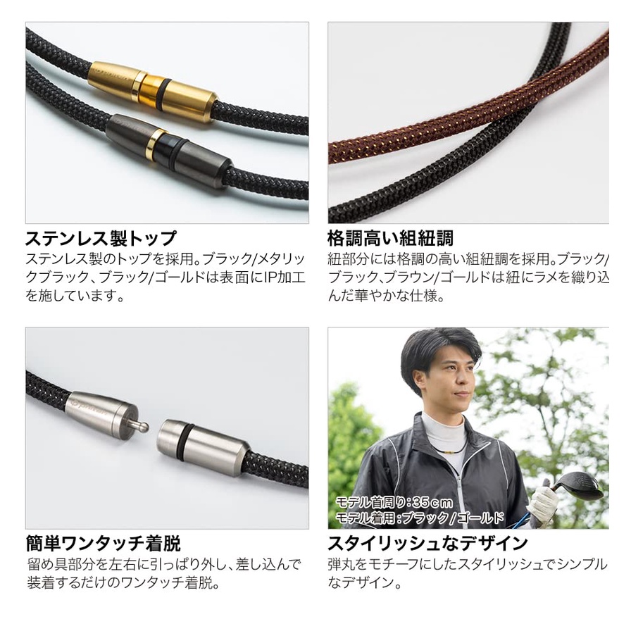 [Direct from Japan] phiten Necklace RAKUWA Magnetic Titanium Necklace BULLET Black / Metallic Black 50cm [Stiff Shoulders] [Stiff Neck] [Stiffness Improvement]