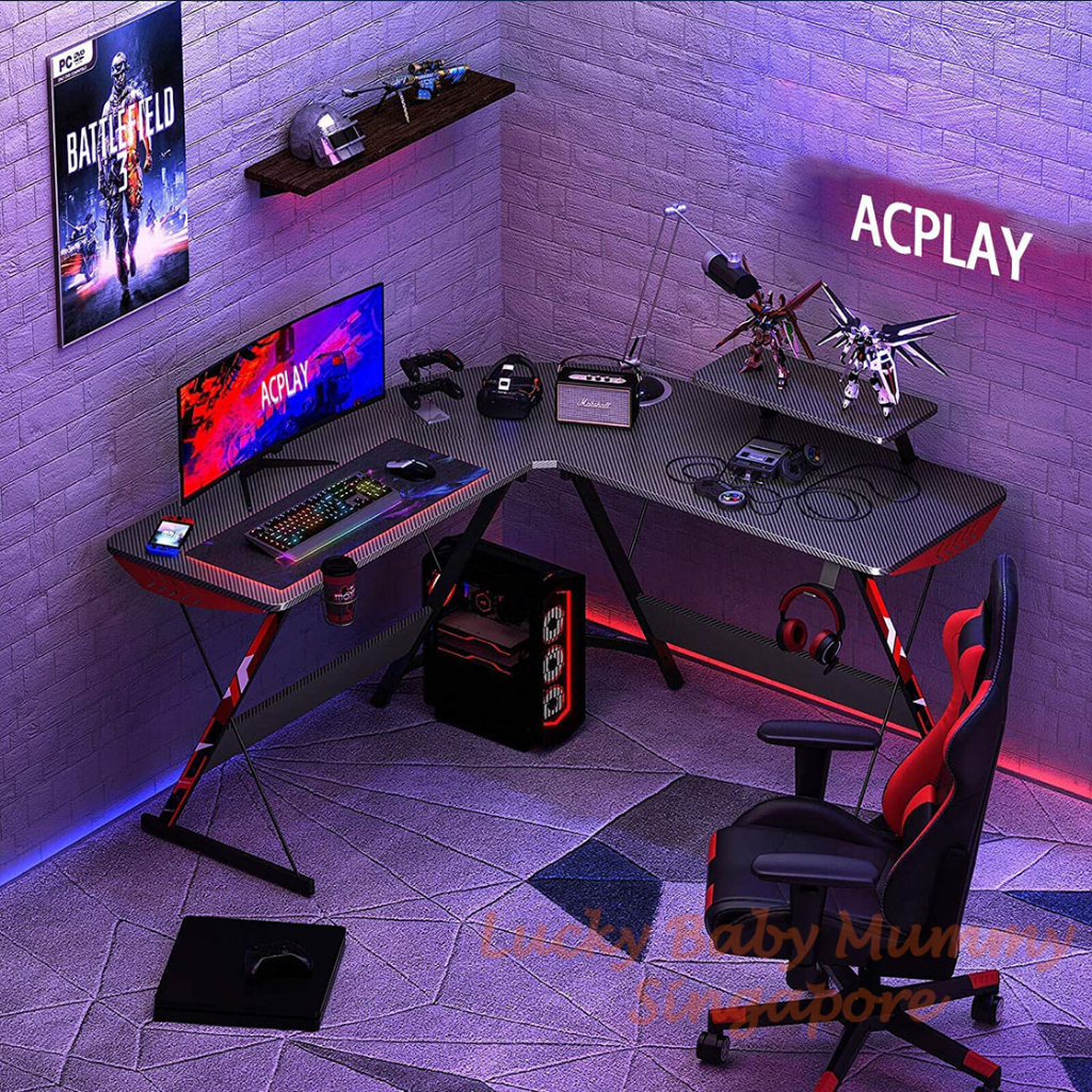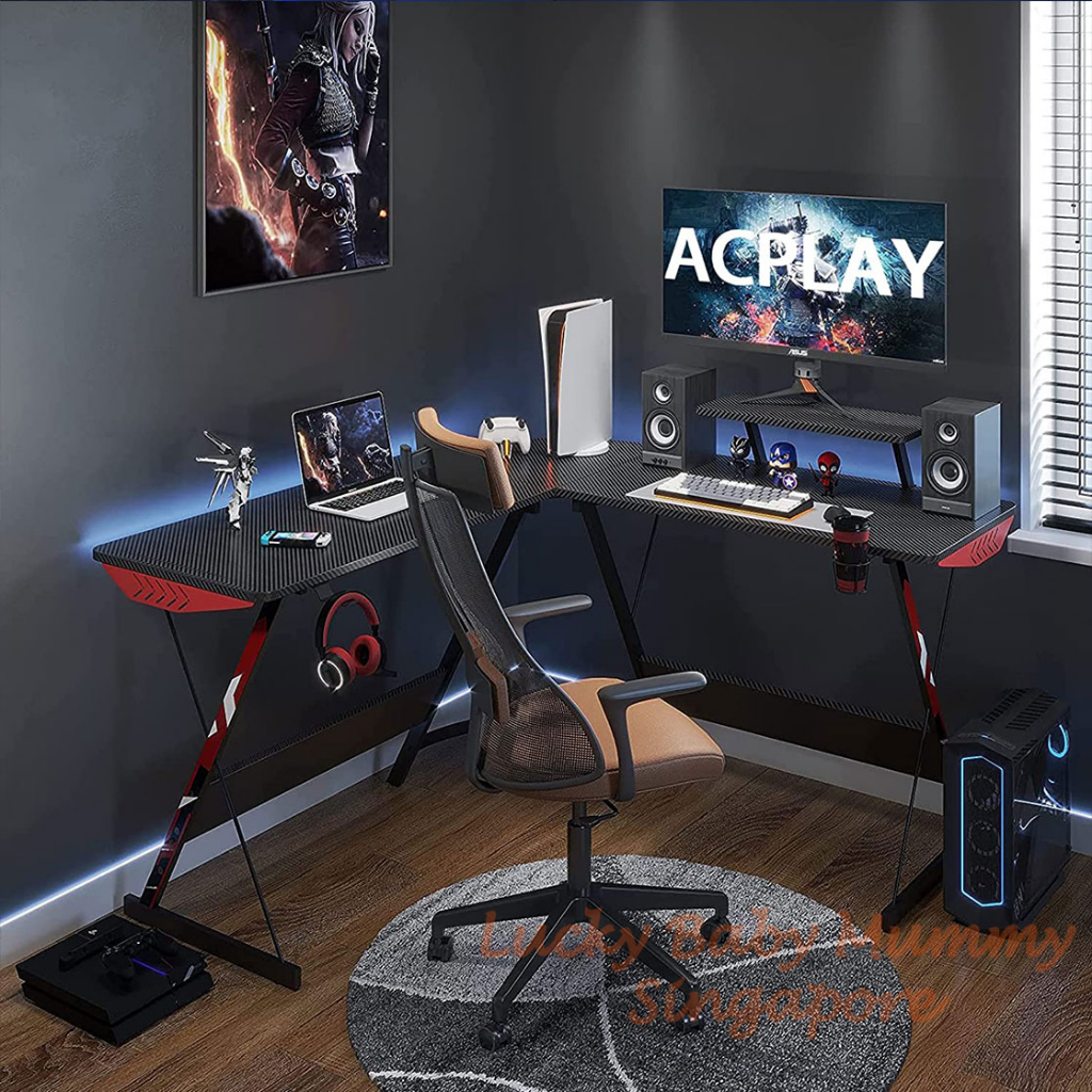 [Local Seller] Carbon Fiber L Shape Gaming Table / Desk / Study Table/ Office Table/Computer Table/Laptop Table / SG