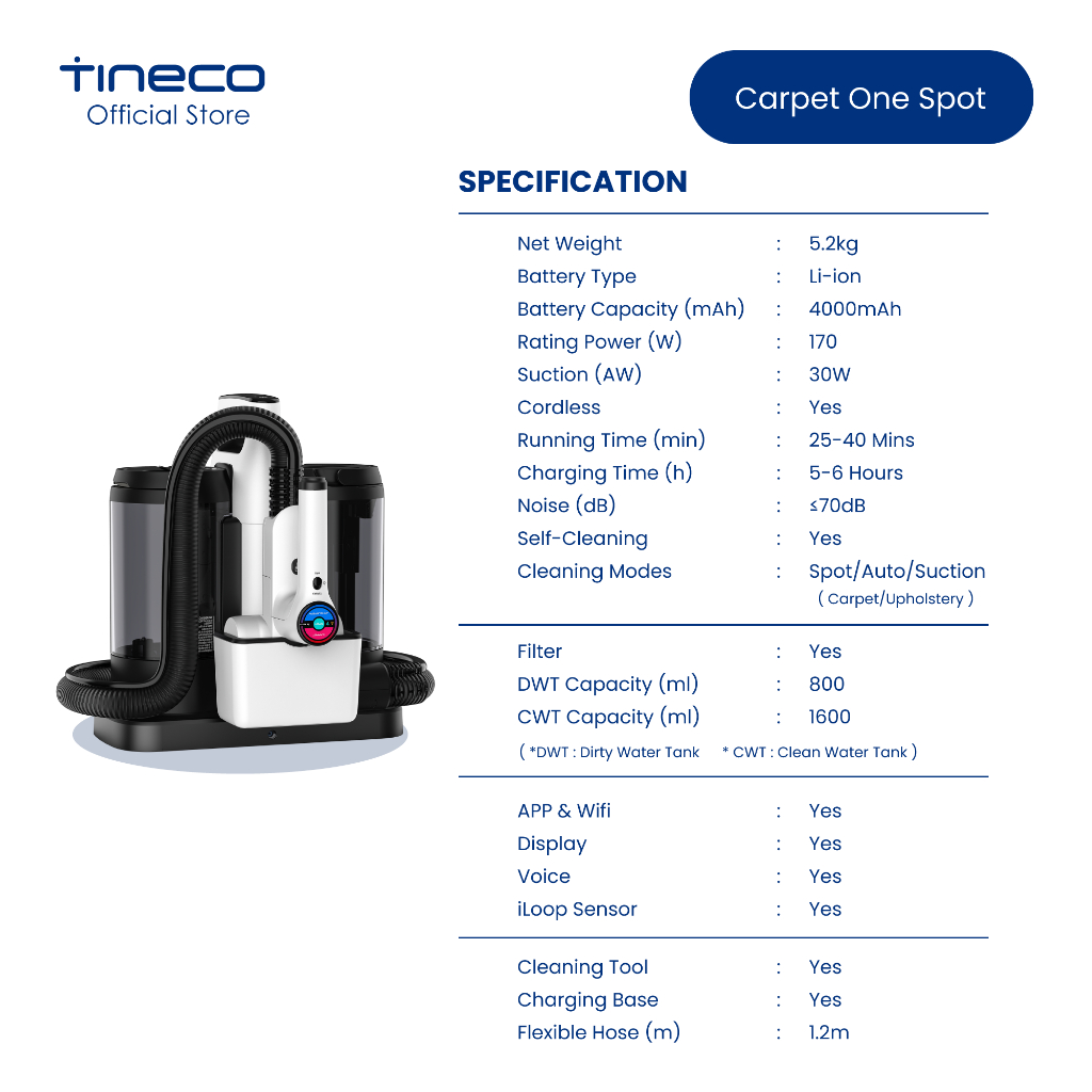 [NEW] Tineco CARPET ONE SPOT Smart Cordless Carpet Upholstery Sofa Curtain Cushion Wash Cleaner| Large Tank | Self-clean