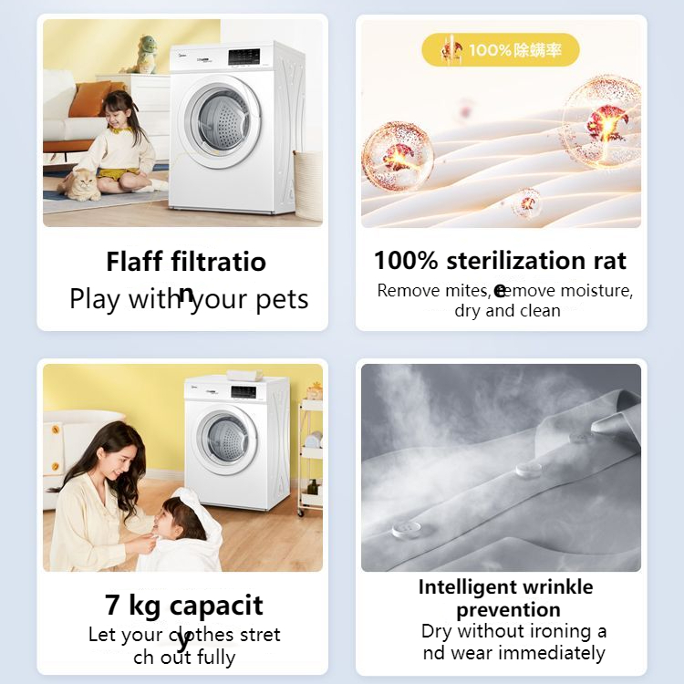 ✅FREE SHIPPING✅ Midea 7kg Dryer Healthy Drying Deodorant Mite Removal Fiber Three-Dimensional High Temperature MH70VZ10 dryer