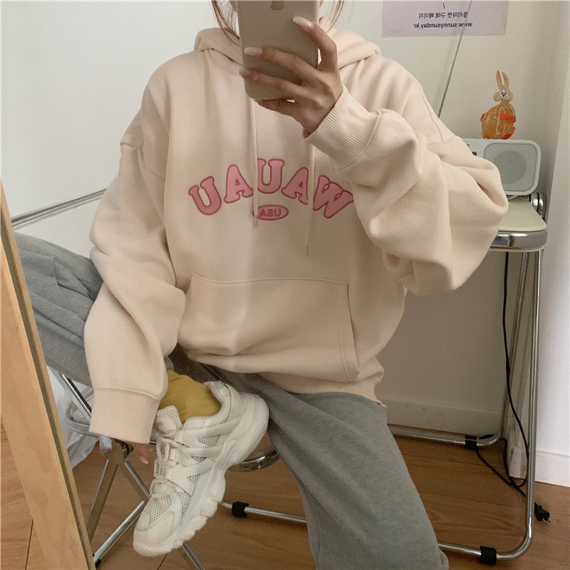 Women's preppy style t-shirts, fleece long-sleeved tops, long-sleeved tops, plus-size tops, women's clothing, hooded fleece lining, tops, clothing, hooded t-shirts, preppy style t-shirts
