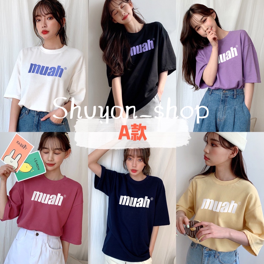 [New styles and colors/shipping in 1-4 days] muahmuah short-sleeved muah short T-shirt, thick cotton, classic short-sleeved, multi-color top, couple's clothing, Korean purchasing muah