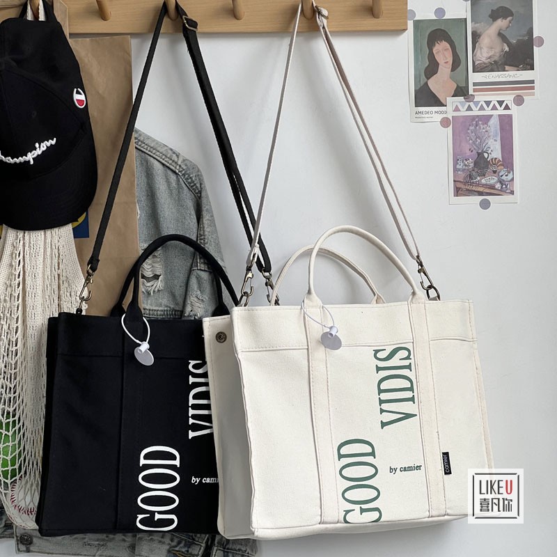 【Any 2 at $45.99】Original Design Japanese Letter Commuter Thickened Canvas Tote Bag Leisure Art Student Simple One Shoulder Handbag