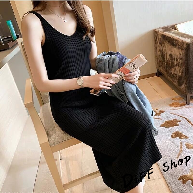Korean style slim knitted vest dress long skirt dress women's clothing