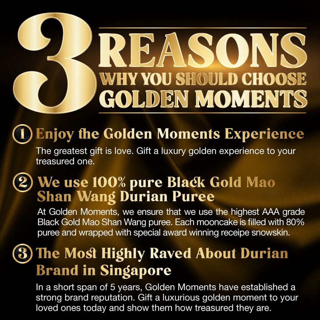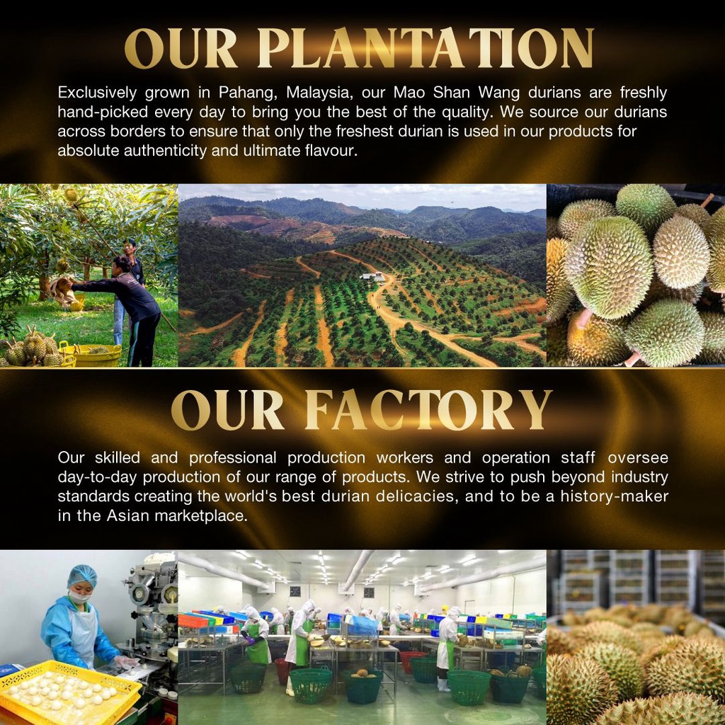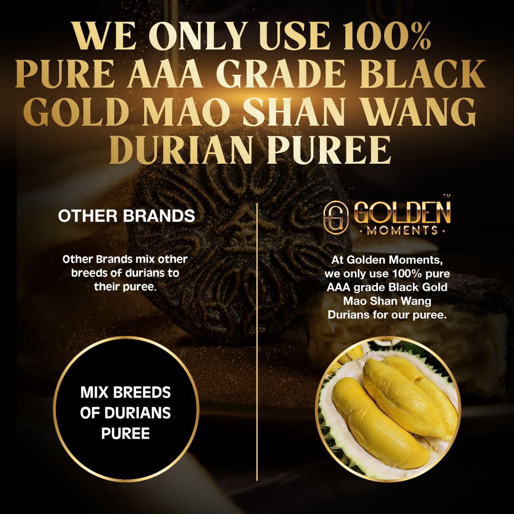 Taste:fresh, rich and creamy durian filling Quality:premium ingredients Very presentable, suitable as a gift. Taste very fresh and nice. The smooth texture melts on the tongue, the natural sweetness is perfect!