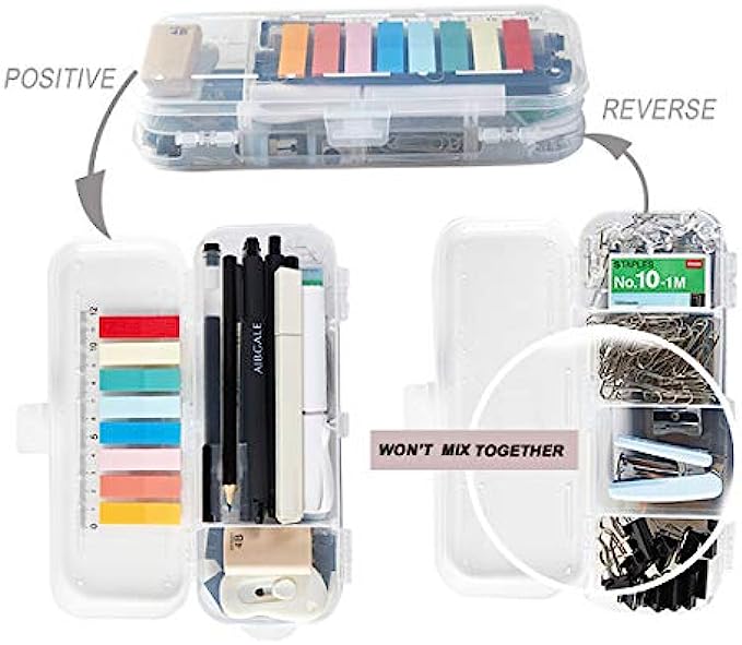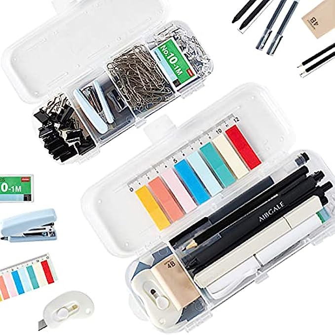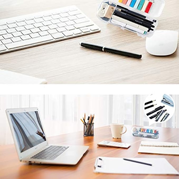 • 【EASY TO CARRY】- Our office supplies are packed in a reusable transparent plastic organizer case with 6 separated compartments, easy to carry and store when traveling or Outing. This small office supplies supply you with a matching set of everything you need for your work space.