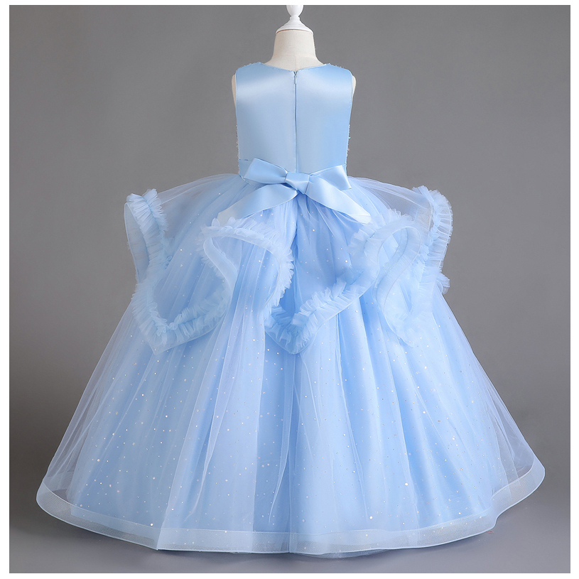 3-14 Years Old Long Dress Wedding Sequined Gowns Pink Red White Stage Costume Kids Girl Princess Dresses