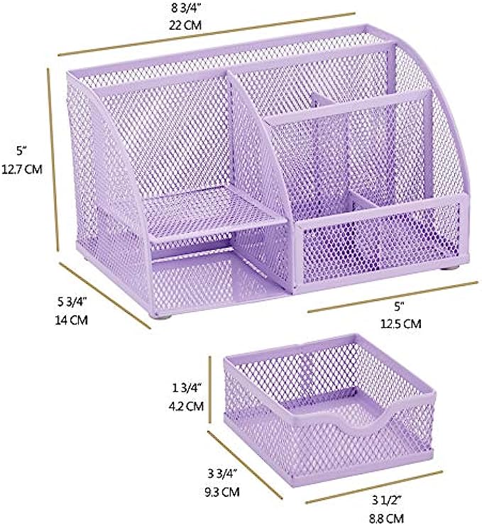 Annova Mesh Desk Organizer Office with 7 Compartments + Drawer/Desk Tidy Candy/Pen Holder/Multifunctional Organizer - Light Purple / Lavender