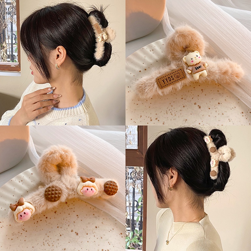 Cute Bear Strawberry Plush Hair Claw Clip Rabbit Astronauts Heart Bow Hairpin for Women Hair Accessories
