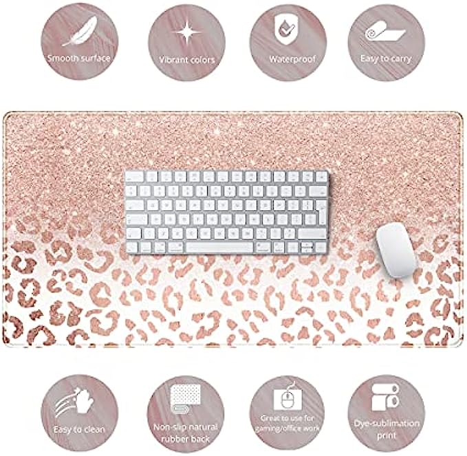 Desk Mat XXL Mouse pad, Pink Rose Gold Leopard Print Office Supplies and Accessories Decor Office for Women 31.5X15.75in,Stitched Edges Smooth and Non-Slip Rubber Bottom, Large Mouse pad for Desk
