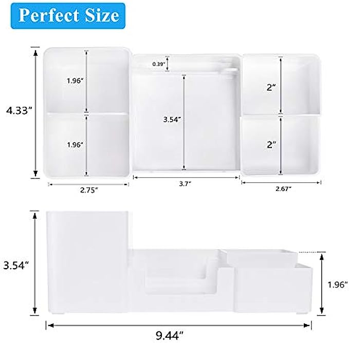 • ★ PERFECT SIZE - Desktop organizer : 9.4" x 4.4" x 3.5" inch. This is a pretty perfect size for your desk.A beautiful and excellent organizer that keeps your desktop clean and tidy.Perfect for the new grad, a birthday, Mother's Day or Valentine's Day gift, it truly can be appreciated by one and all.