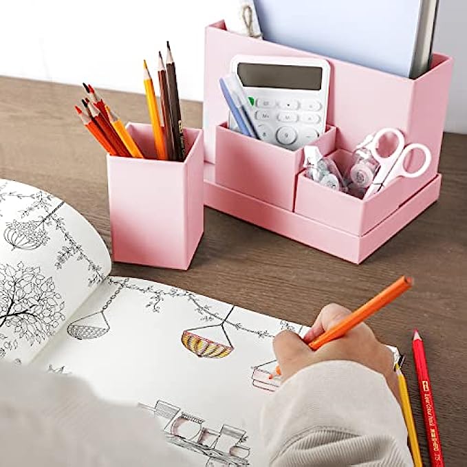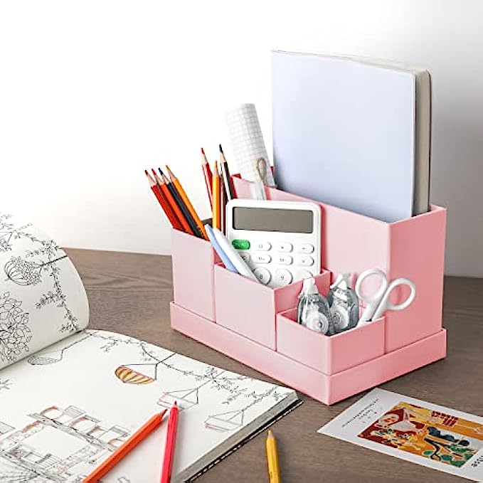 Desk Organizer, Office Desk Organizer and Accessories,Vanity Organizer, Cosmetic Storage Organizer, Pen Holder, School Supplies Caddy, Desk Organization for Home/Office/Dorm (Fairy Pink)