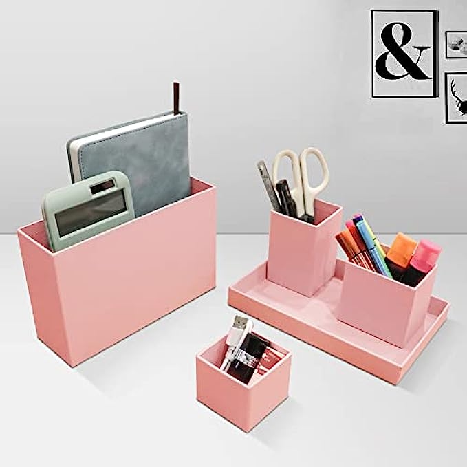 • ? MULTI FUNCTIONAL DESK STORAGE : The desk organizer will keep the stuff you need at hand while staying out of your way. You can place the desk organizer in your office, home, school, dressing desk for pens , notebooks, remote control, scissors, brushes, cosmetics and all in one design.