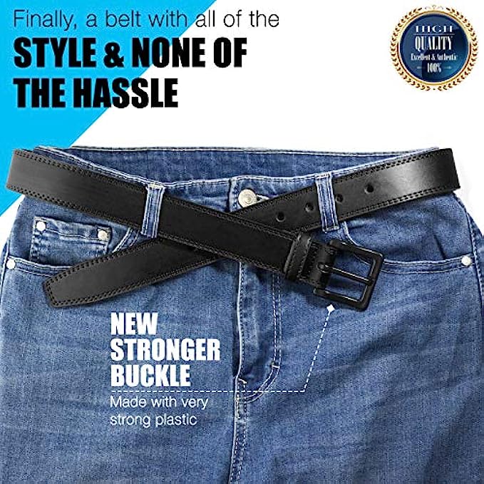 • BREEZE THROUGH SECURITY WITH METAL FREE! – Cut the hassle of constantly removing (and then putting back on) your belt at security checkpoints. We created our polymer blend new strong belt buckles so you’ll have fewer beeps to clog up your busy life. With ITAY Belts, you get functionality without sacrificing the high-end look of metal belt buckles.