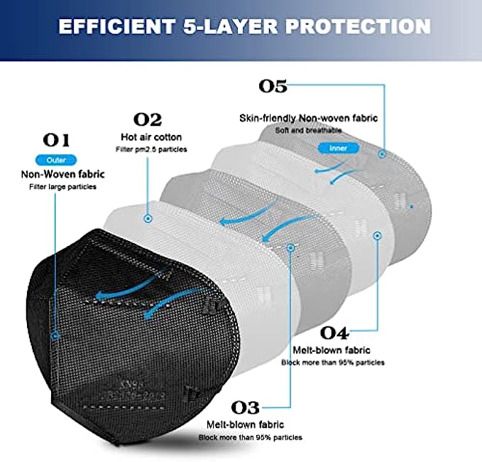 KN95 Face Mask 50 PCS, Breathable Protection Masks, 5-Ply KN95 Black Masks, Cup Dust Safety Masks