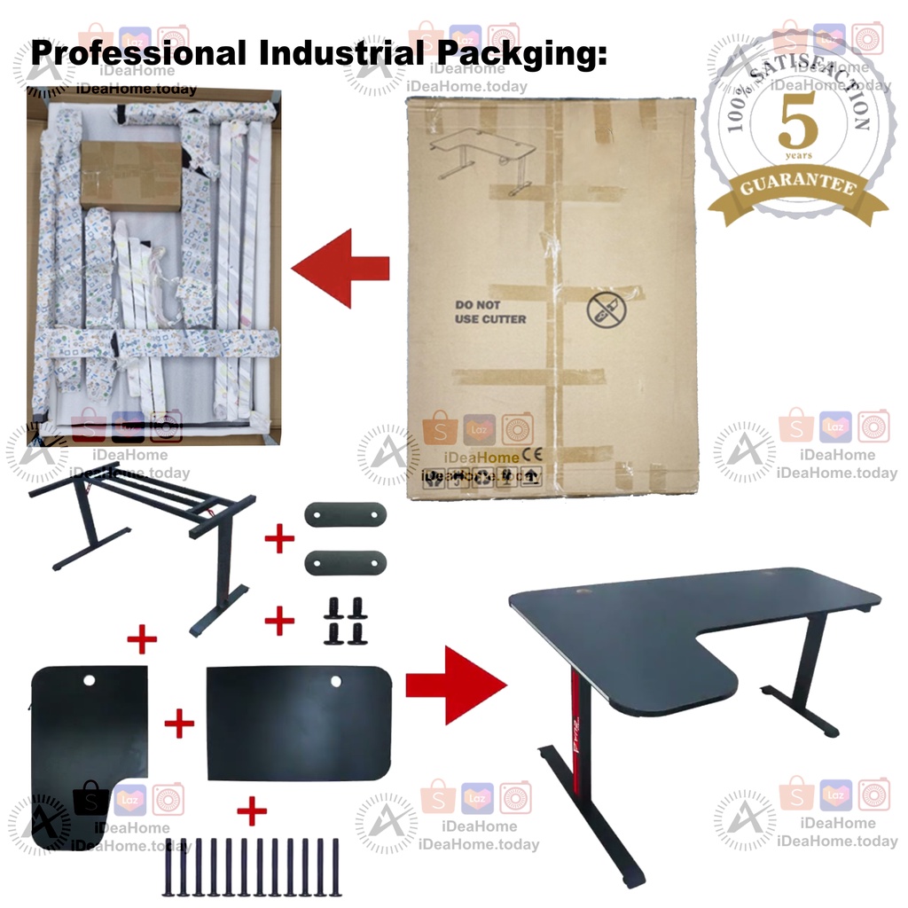 L-Shape RGB Gaming Desk with Led Lights, Table Computer Workstation with LED RGB Lights, Headphone Hook and Cup Holder for Home