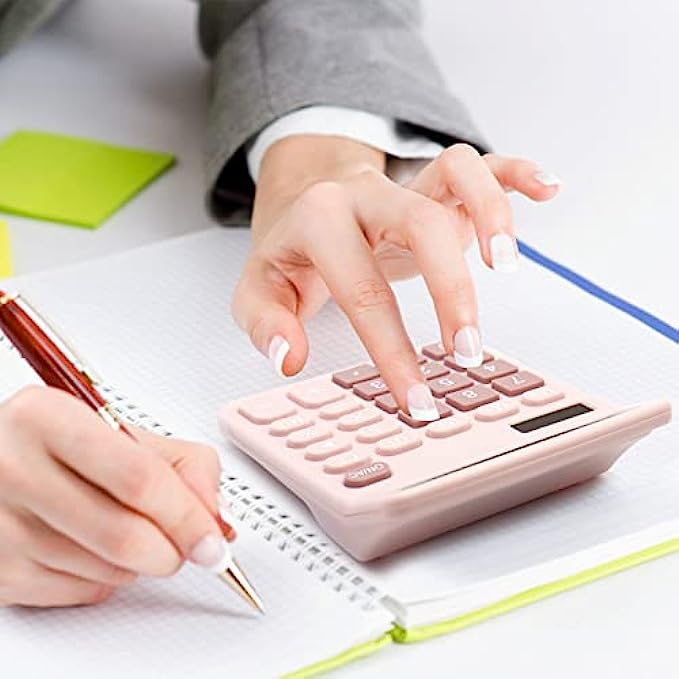 Pink Calculator, UPIHO Basic Office Calculator, Desktop Calculator 12 Digit with Large LCD Display for Pink Office Supplies with Sensitive Button, Pink Office Supplies, School Supplies for Teen Girls