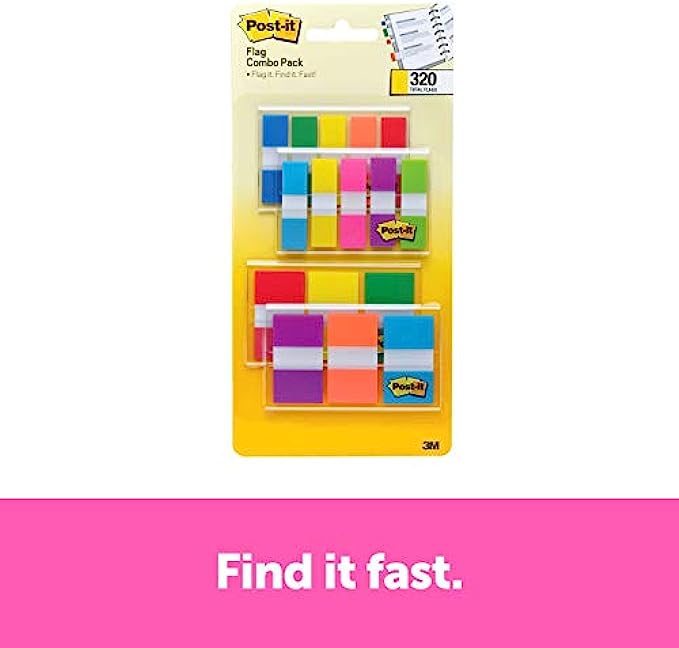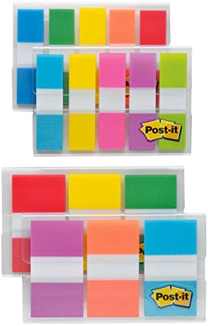 Post-it Flags Assorted Color Combo Pack, 320 Flags Total, 200 1-Inch Wide Flags and 120.5-Inch Wide Flags, 4 On-The-Go Dispensers/Pack (683XL1)