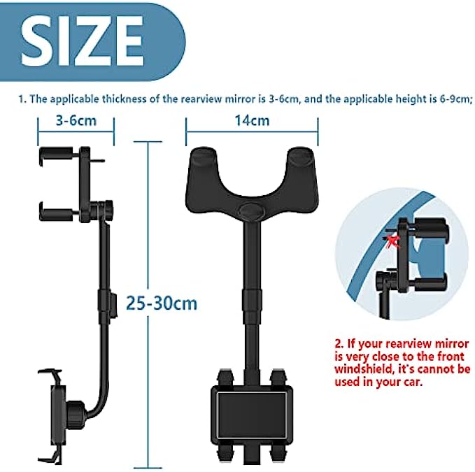 • - 360-Please note: 1. The thickness of the rearview mirror is 3-6cm, and the height is 6-9cm; 2. If your rearview mirror is very close to the front windshield, it is not recommended that you buy it, otherwise it cannot be used in your car. degree rotation adjustment, you can always find the angle that suits you.