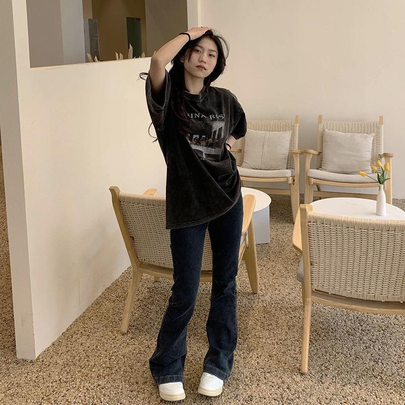 TGNS washed distressed short-sleeved T-shirt short-sleeved top American retro ins style oversize loose short t summer clothes clothes women