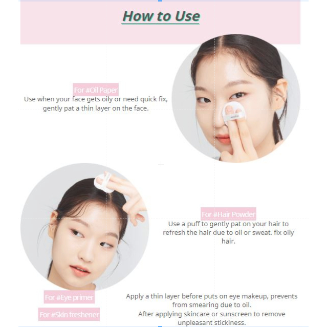 fast delivery and seller also gave free gift! love the new translucent packaging that allows you to see the quantity left. the puff is rly soft and also nicely sealed (: