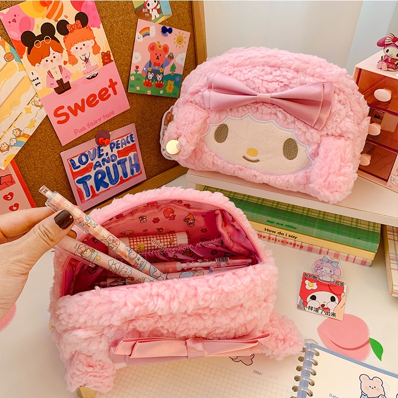 Kawaii Plush Pencil Bag Girls Cute Pencil Case Large Capacity Student Learning Back to School Supplies Storage Box Korean Stationerypencil case