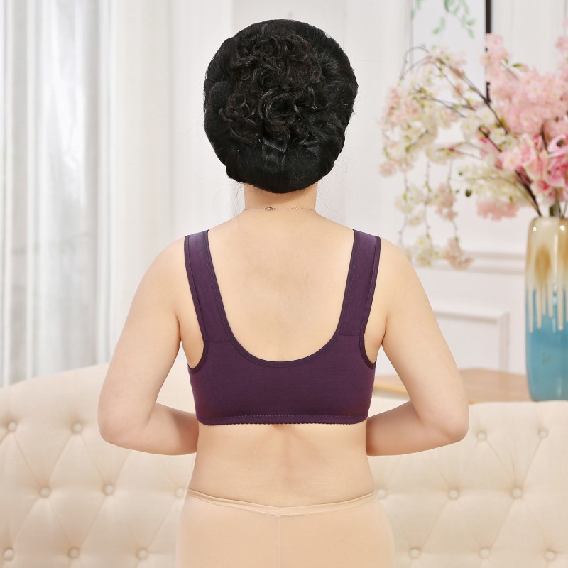 Large Size Unrimmed Front Button Underwear for Middle-aged and Elderly Ladies Soft Cotton Vest Type Bra D142