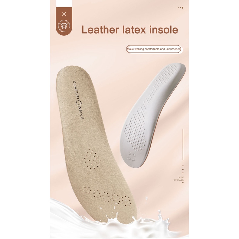 Leather Latex Sports Insole Cowhide Insoles for Shoes Arch Support Shoe Pads Shock Absorbing Plantar Fasciitis Template Inserts