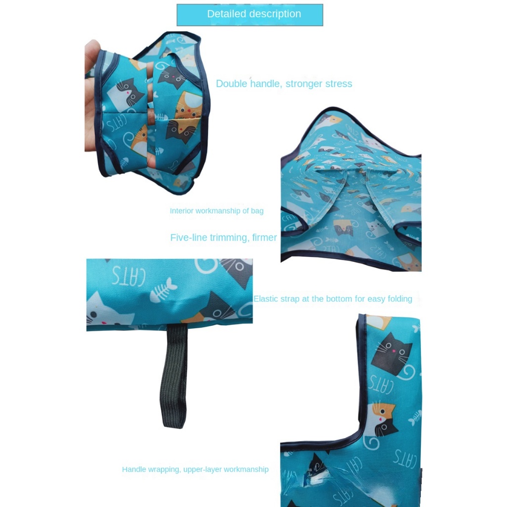 Colour:Nice and Cute Material Quality:Good Cute cats design recycle bag. The size is small-medium, good to put small misc items. Overall, happy with it. :)