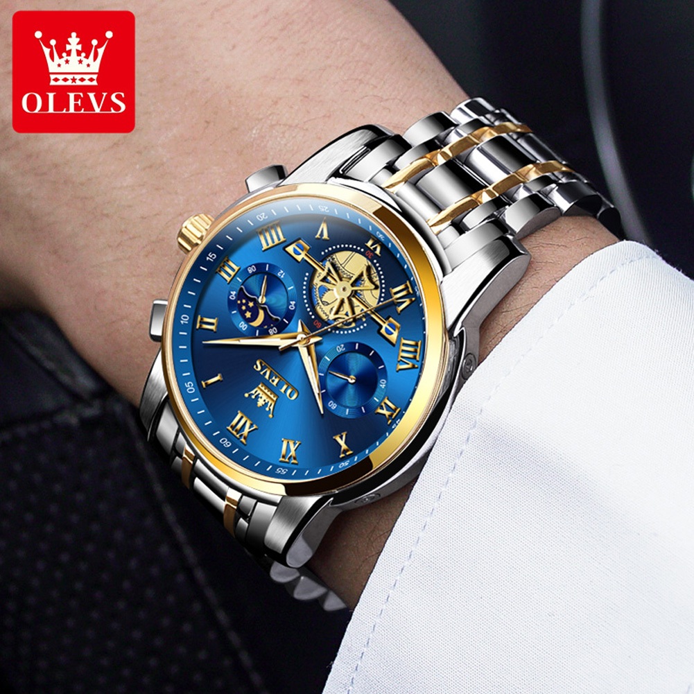 OLEVS Watch For Men Waterproof Original Stainless Steel Quartz Luxury Multifunction Wristwatch 2859