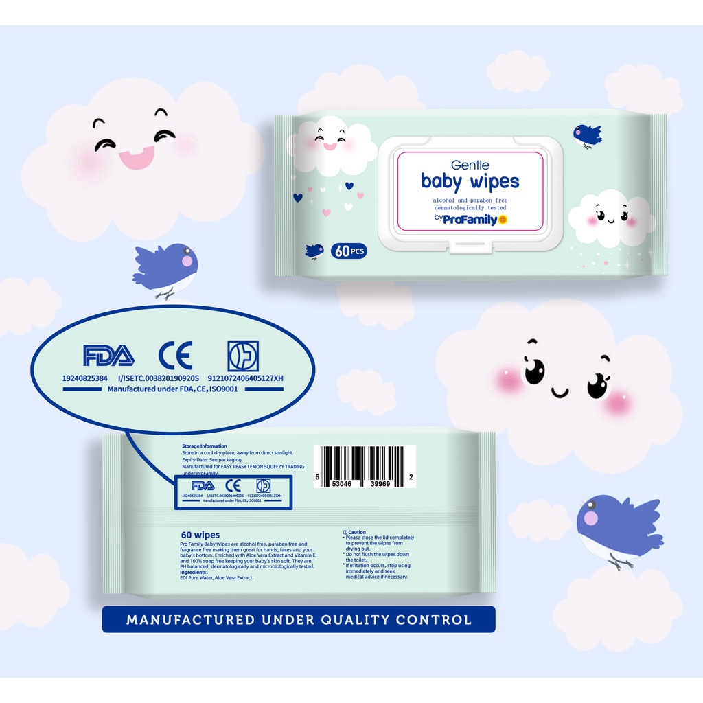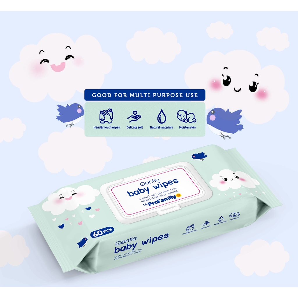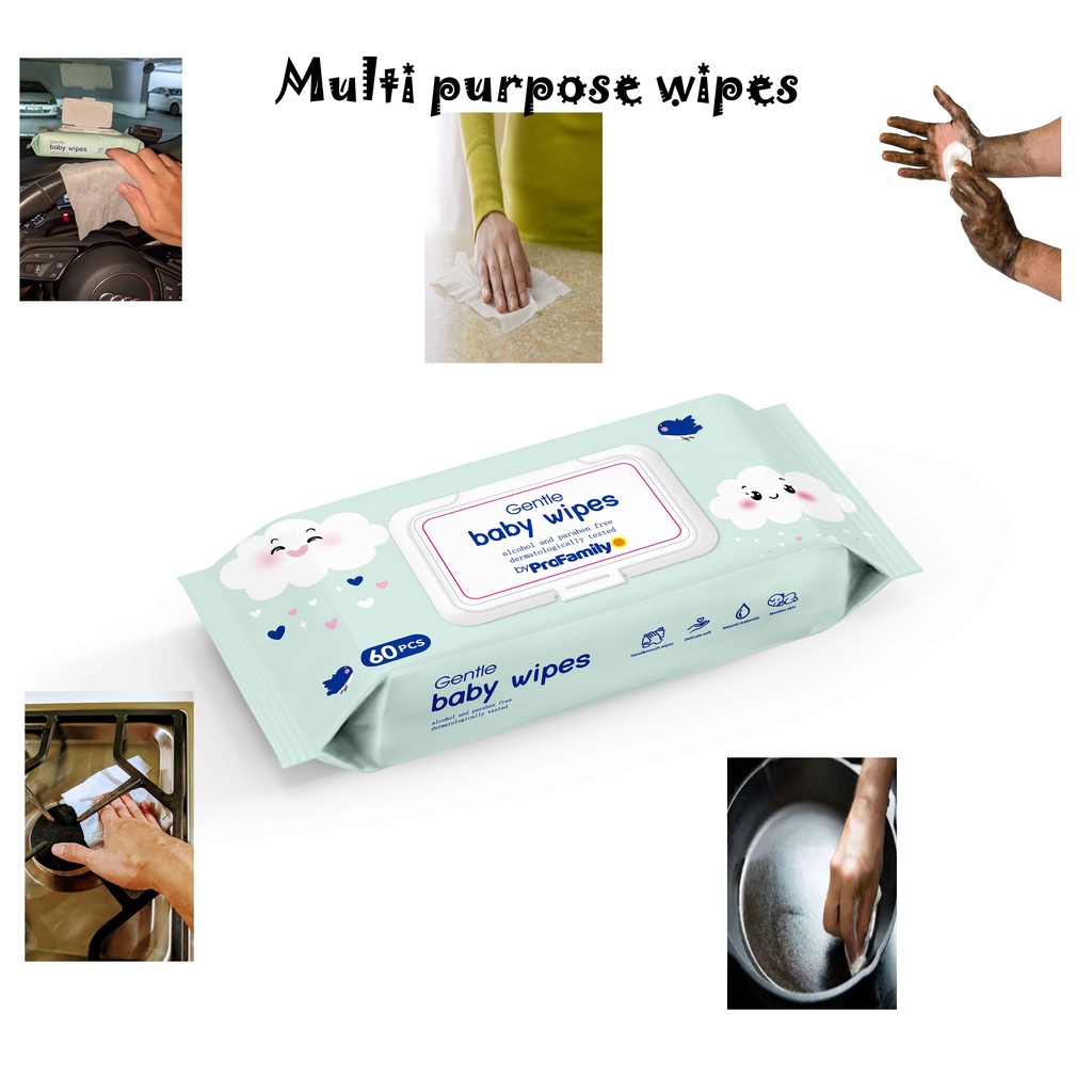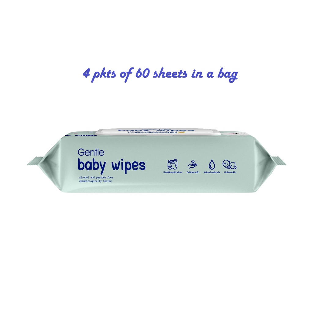 Pro Family Wet Wipes [Natural Care Sensitive Baby Wipes][Pack in 4 packets*60s/bag][240sheets][Safe & Multi purposes]